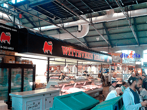 12:00 Agarramos Front St y entramos al St Lawrence Market. En la pagina del mercado podrán ver los horarios de cada día (cuidado que Domingo y Lunes cierra) http://www.stlawrencemarket.com/. El mercado es muy interesante; son 2 pisos en los que se mezcla la comida preparada con la cruda, las panaderías, souvenirs y demás.
